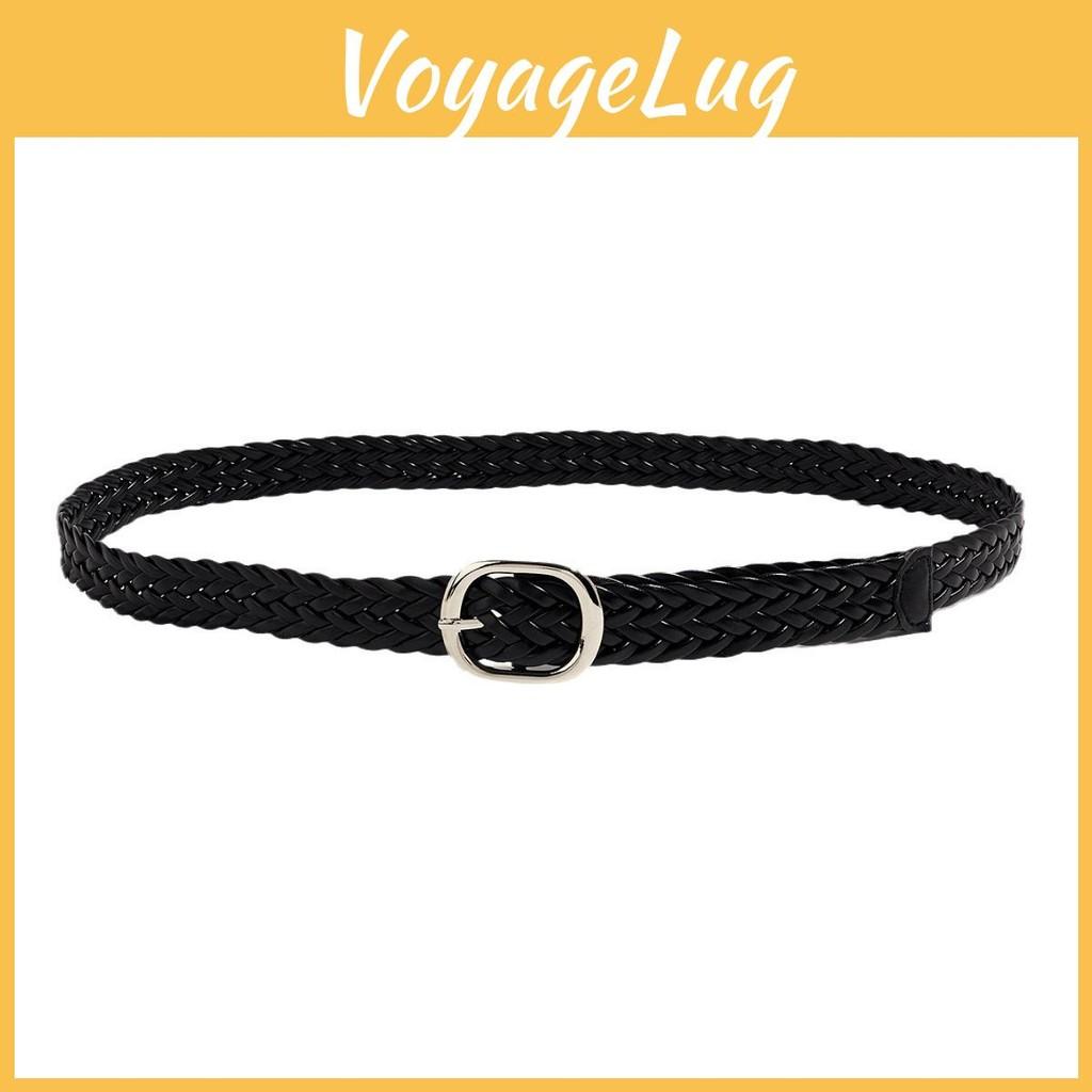 This women's black woven belt features a durable PU leather strap , with a sturdy alloy buckle and a sleek J-shaped closure. Its minimalist design and woven pattern add a trendy touch to casual and fashion-forward outfits. Ideal for summer wear, its easy to adjust and maintainsimply wipe clean with a damp cloth.