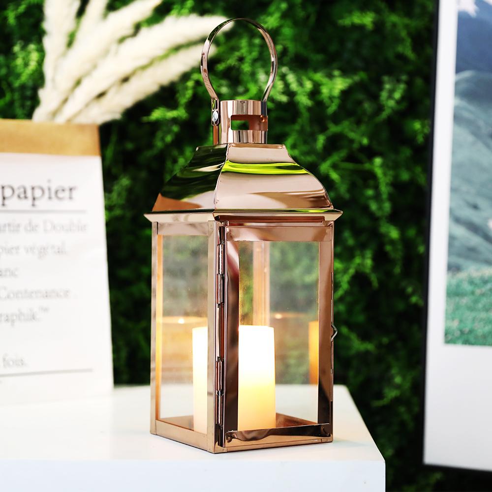 Stainless Steel Candle Holder Lanterns Vintage Rose Gold Hanging Candle Lantern for Indoor Outdoor Wedding Home Decor Vintage