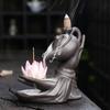 Zen Meditation Relaxation Handcrafted Purple Clay Backflow Incense Burner Lotus Buddha Hand Design Incense Burner -No Incense