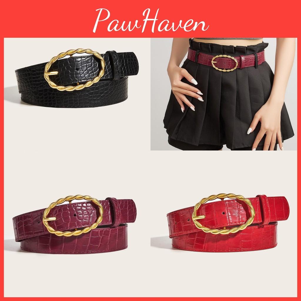 Womens Stone Grain Pu Leather Belt With Twists Oval Metal Buckle For Everyday
