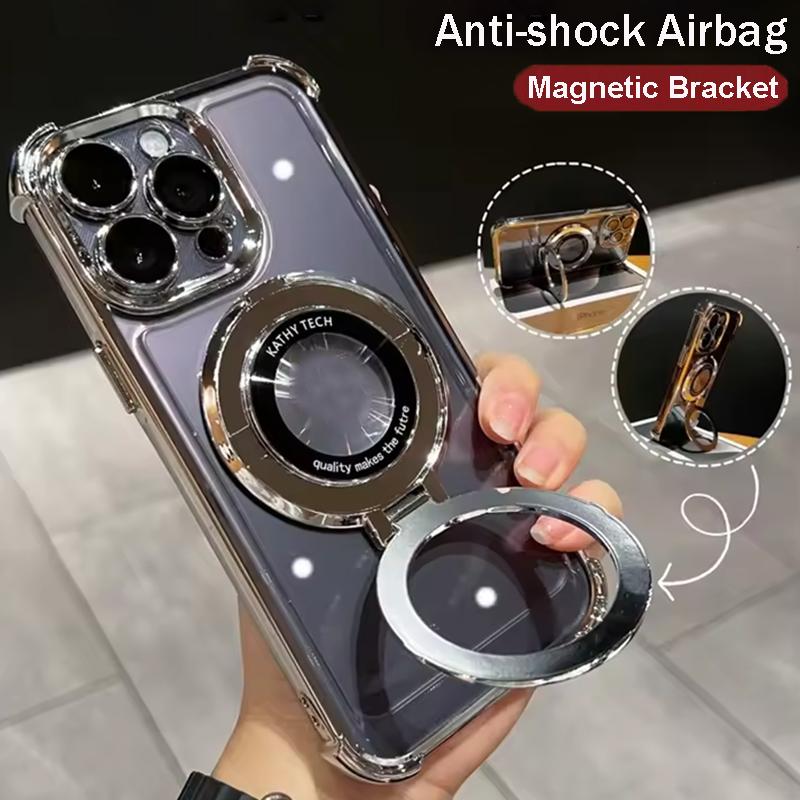 Shockproof Transparent Magnetic Bracket Case for iPhone 17 Air 16 15 14 13 12 11 Pro Max 15 16 Plus XS MAX 8 Samsung S25 S24 23 S22 S21 Ultra Plus FE