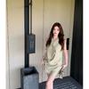 Kumikumi Pure Desire Style Set French Style Swing Collar Slimming Vest Women Summer Solid Hip Skirt Two Piece Skirt