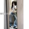 Small Long American Retro Wide Leg Denim Female Summer Crack Washed Loose Drooping Straight Mopping Pants