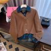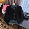 Autumn Winter Retro Fake Two-Piece Knitted Cardigan Sweater Women's Fashion Spliced Denim Short Coat Female Casual Tops