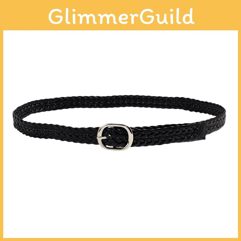 Black Womens Pu Woven Belt With Alloy Closure Design For Trendy Casual Outfits