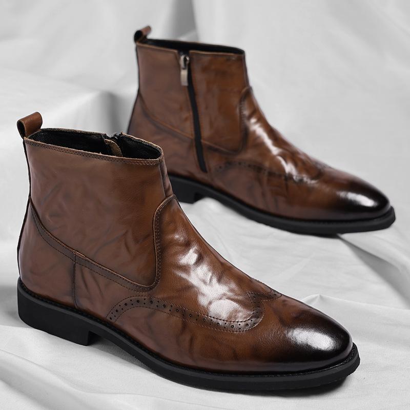 Round Head Chelsea Boots Top Layer European and Korean Retro Flat Bottom Short Boots Martin Boots One Pedal Shoes