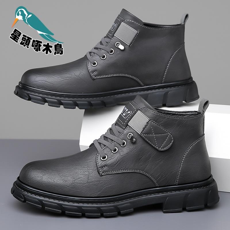 Martin Boots Men's 2025 New Winter Velvet Thickened Cotton Shoes Casual Trend High-top Leather Shoes