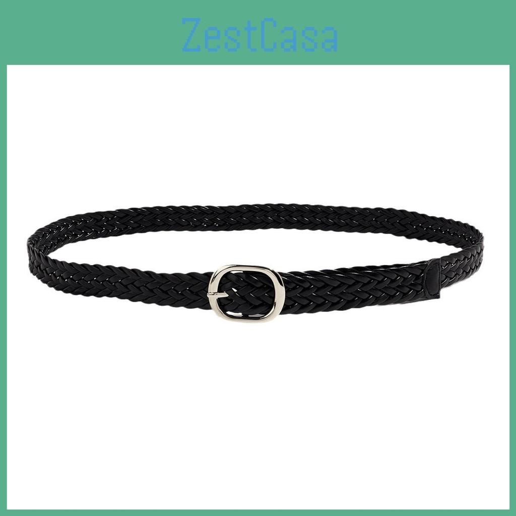 This women's black woven belt features a durable PU leather strap , with a sturdy alloy buckle and a sleek J-shaped closure. Its minimalist design and woven pattern add a trendy touch to casual and fashion-forward outfits. Ideal for summer wear, its easy to adjust and maintainsimply wipe clean with a damp cloth.