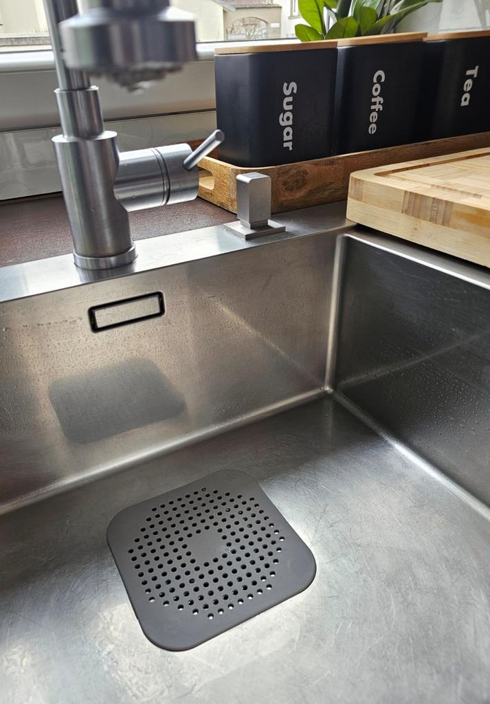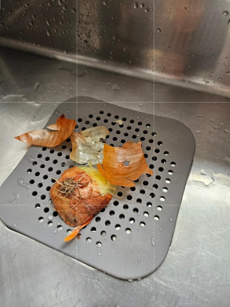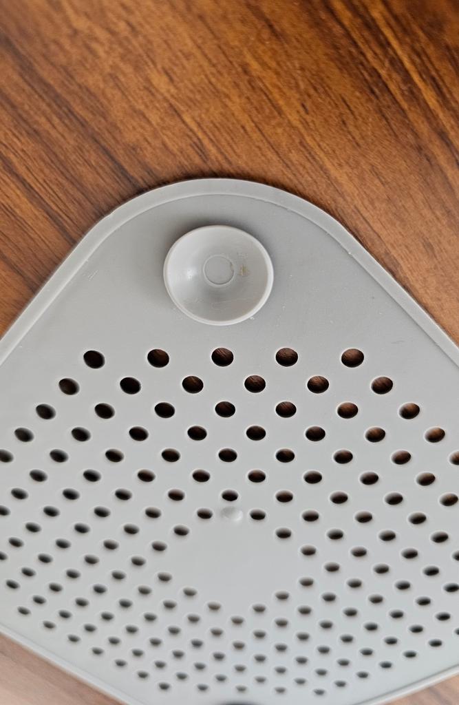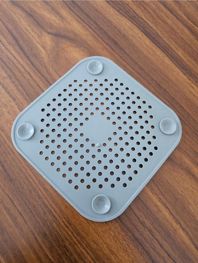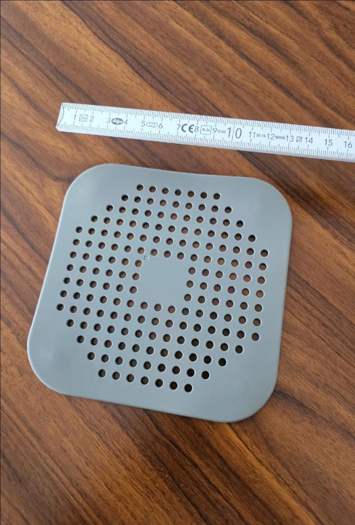 Clog filter Great It has a good size, 14.2*14.2 cm Made from soft, odorless silicone. Has suction cups I recommend 🤗