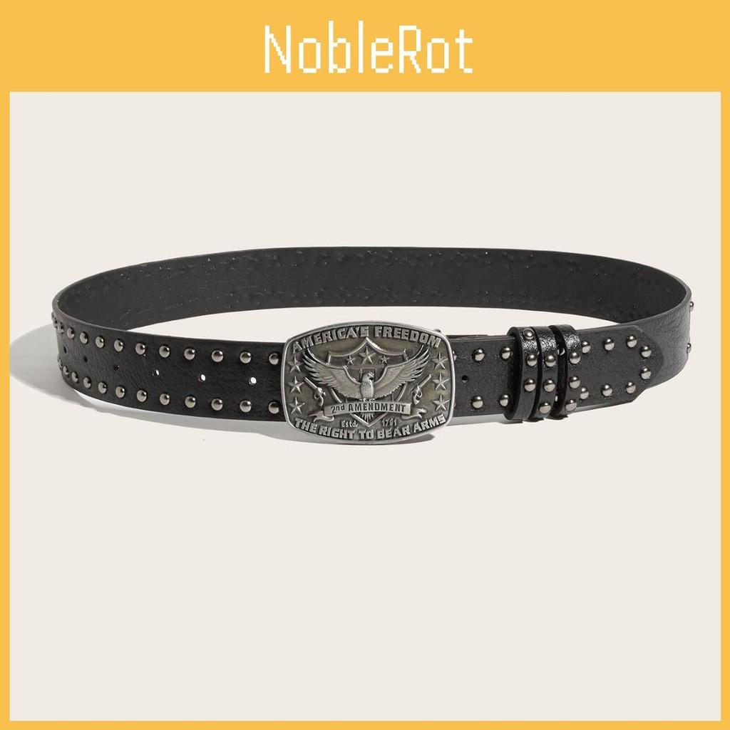 Rivet Leather Decor Punk Belt With Alloy Buckle And Eagle Pattern Casual For