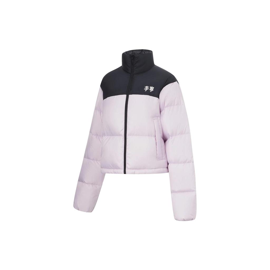 Li Ning Color Block Water Resistant Loose Short Down Jacket Women Outerwear Light-Mist-Purple AYMT318-2