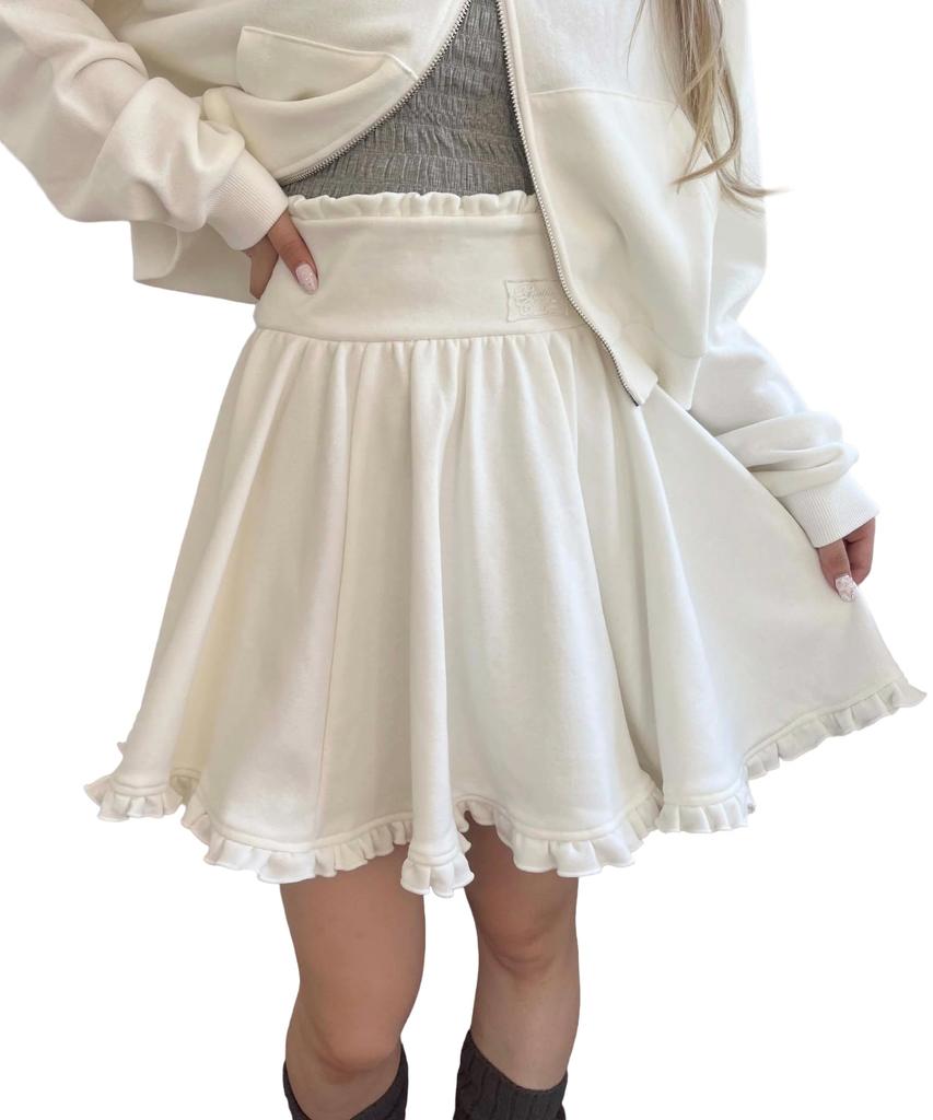 WEGO PHILLY Ruffle Sweat White Skirt, Women's,