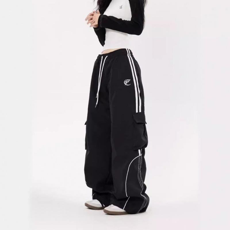 Unisex Striped Elastic Waist Wide-Leg Casual Pants