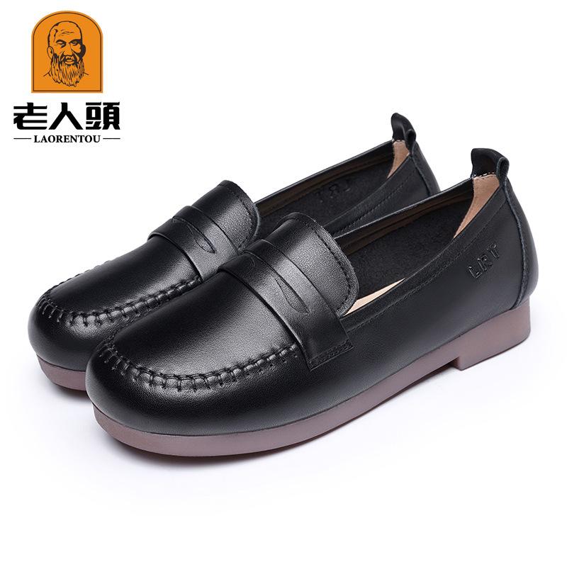 Old Man Head Flat-soled Soft-soled Loafers British Breathable One-pedal Women's Leather Shoes Soft-soled Single Shoes Cowhide XN53532