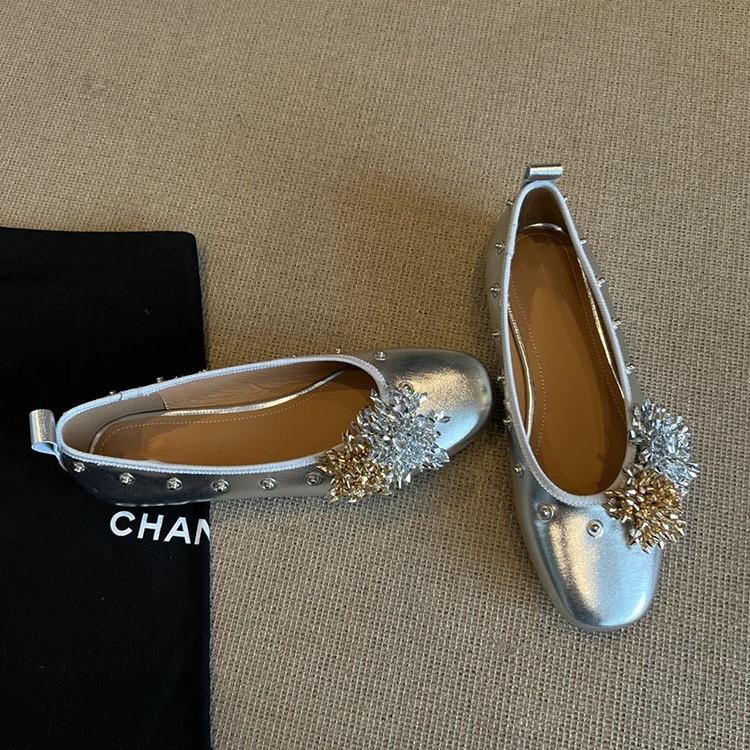 Sheepskin Version~ Versatile Flower Rivet Mary Jane Shoes One Pedal Shallow Mouth Round Head Flat Shoes Shallow Mouth Leather Single Shoes