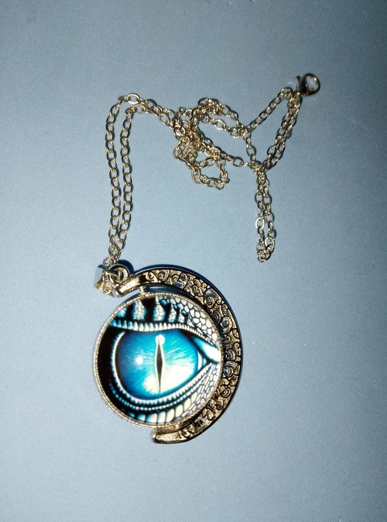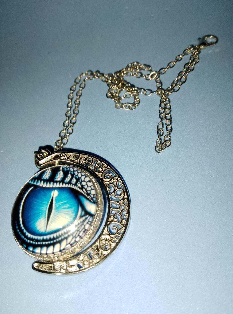 Unisex Rotate Round Dragon Eye Crescent Moon Pendant Long Chain Necklace Jewelry