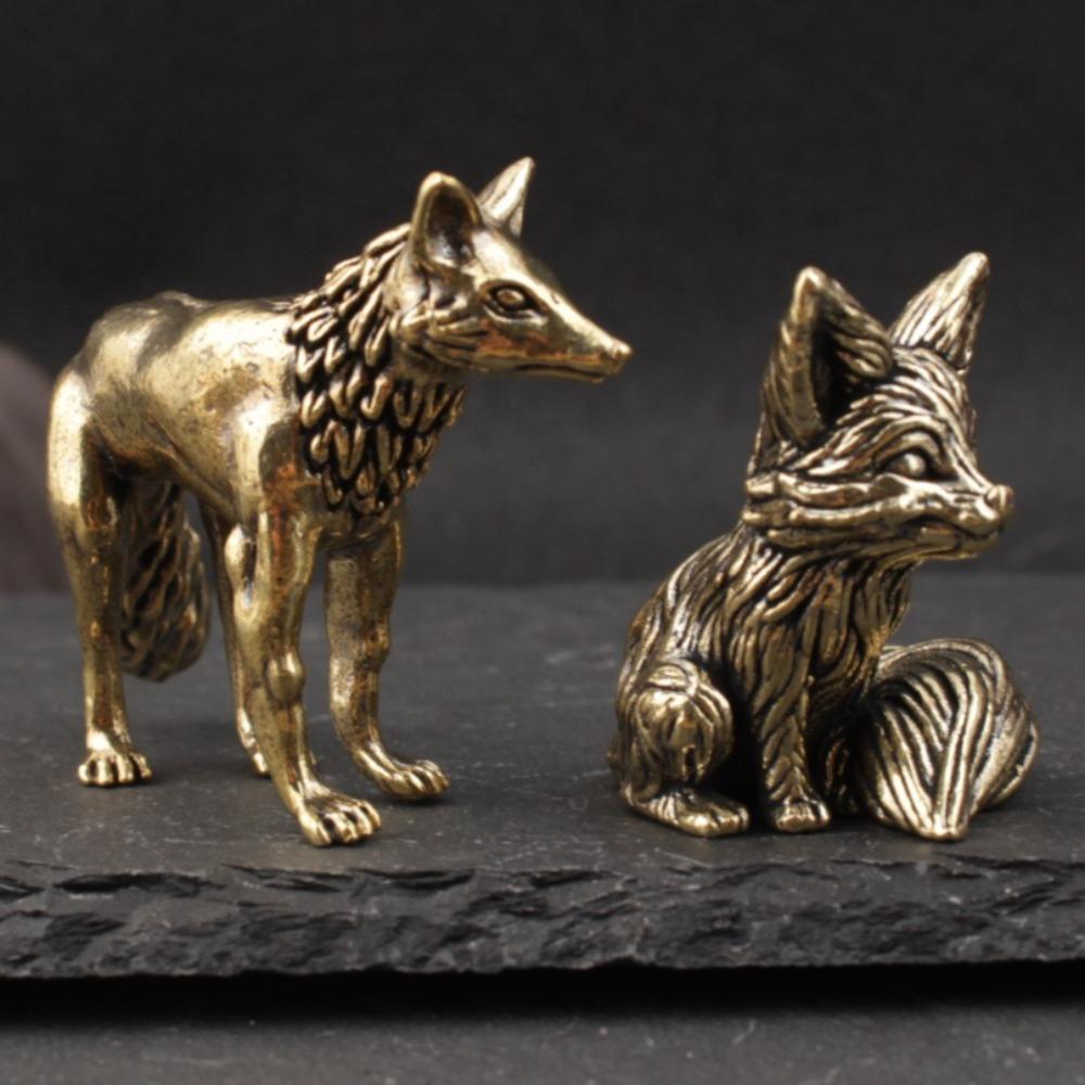 Mini Cute Brass Fox Statue Vintage Simulated Animal Statue Home Office Desk Decor Ornament Metal Figure Props Toy Gift Dropship