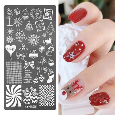 New Year Christmas Nail Stamping Plates Celebration Series Snowman Pattern Stainless Steel Nail Art Manicure Template
