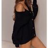 Lantern Sleeve Knitted Cardigan Women's Autumn New Loose Neck Sexy Sweater Jacket