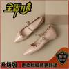 Small Inner Height Increase Single Shoes Women's 2025 Autumn Temperament Rivet Pointed Mary Jane Outside Wearing Shallow Patent Leather Boat Shoes
