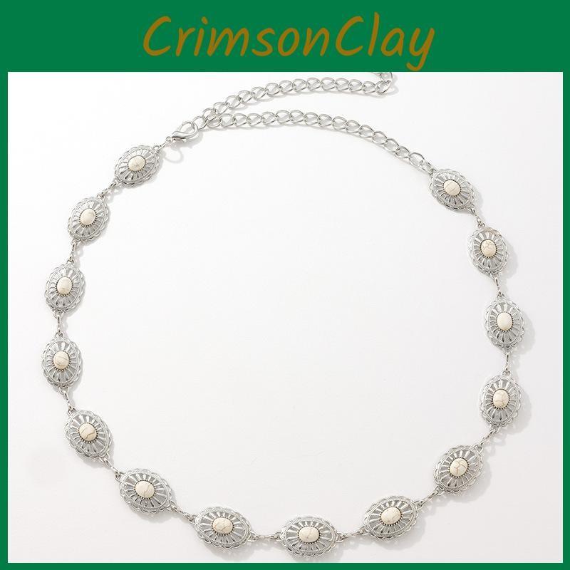 Turquoise Ladies Hollow Metal Waist Chain With Pearl Detailing For Spring Summer And