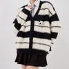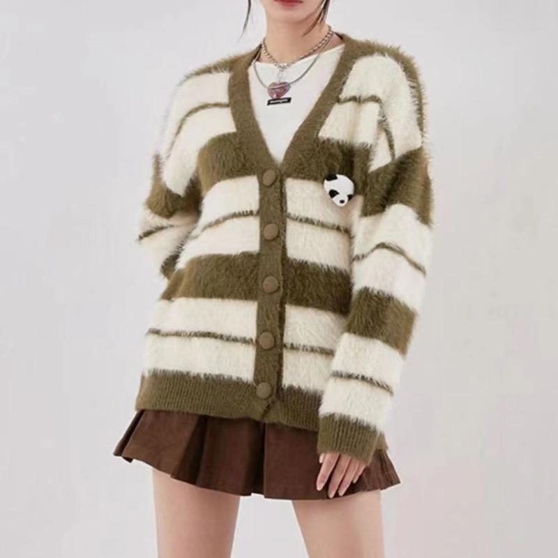 New Fashion Retro Striped Sweater Cardigan Female Niche Panda Doll Design Sense Couple Knitted Sweater