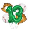 Baseball Balloons 32Inch Foil Green Number 0~13th Birthday Decor For Baseball Party Supplies Baseball Sports Theme