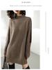 Women's Mid-Length Knitted Wool Sweater Dress with Half-High Neck and Slit – Fashionable and Loose for Autumn and Winter.