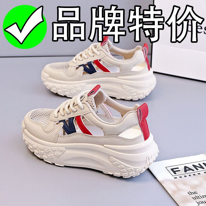 2025 Summer New Hollow Dad Shoes Women's Mesh Breathable Student Trend Casual Thick Sole Inner Height Increase Women's Shoes