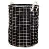Foldable Cotton Linen Laundry Hamper: Round Waterproof Plaid Storage Bin for Dirty Clothes and Toys