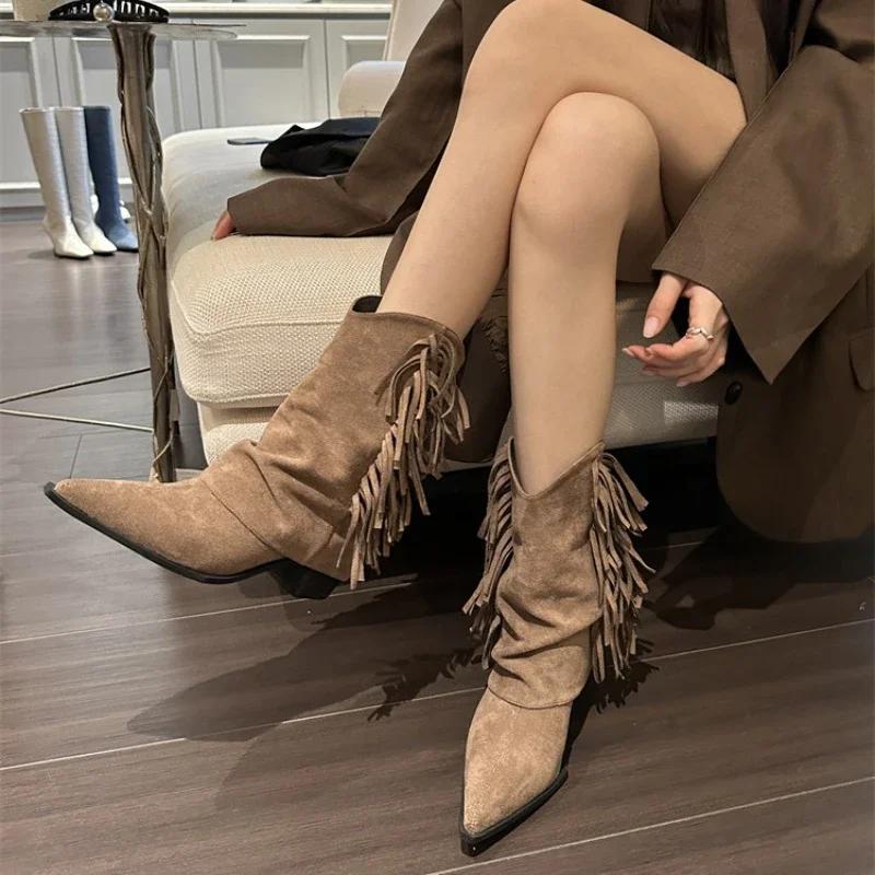 Fashion Ladies Shoes High Quality Mid-Calf Women's Boots Fashion Tassel Modern Boots Women Sexy Pointed Toe Solid Shoes for Women