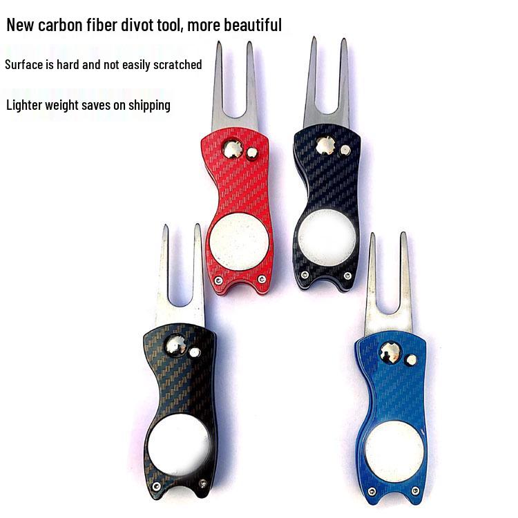 New Carbon Fiber Divot Tool - Folding Golf Ball Marker for Lawn Repair