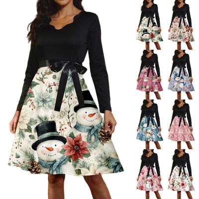 Women's Casual Fashion Long Sleeve Christmas Graphic Printed Vintage Long Dresses