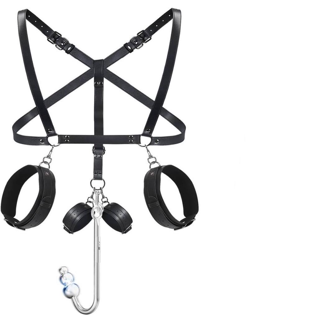 Women's Adjustable Backless Erotic Suspender with PU Straps