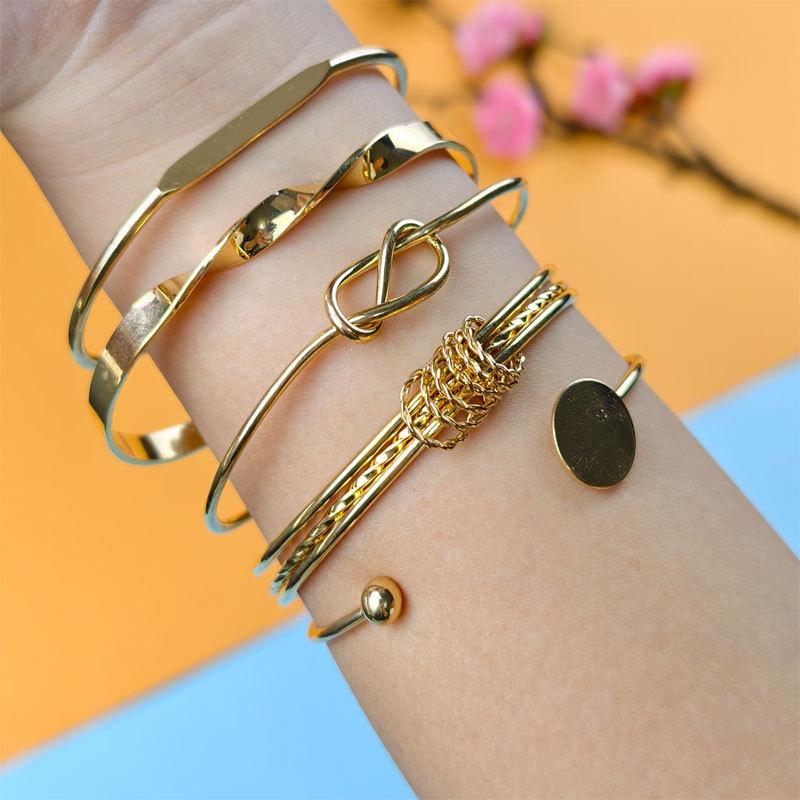 Exaggerated Geometric Knotted Bangle Set: Five-Piece Minimalist Style