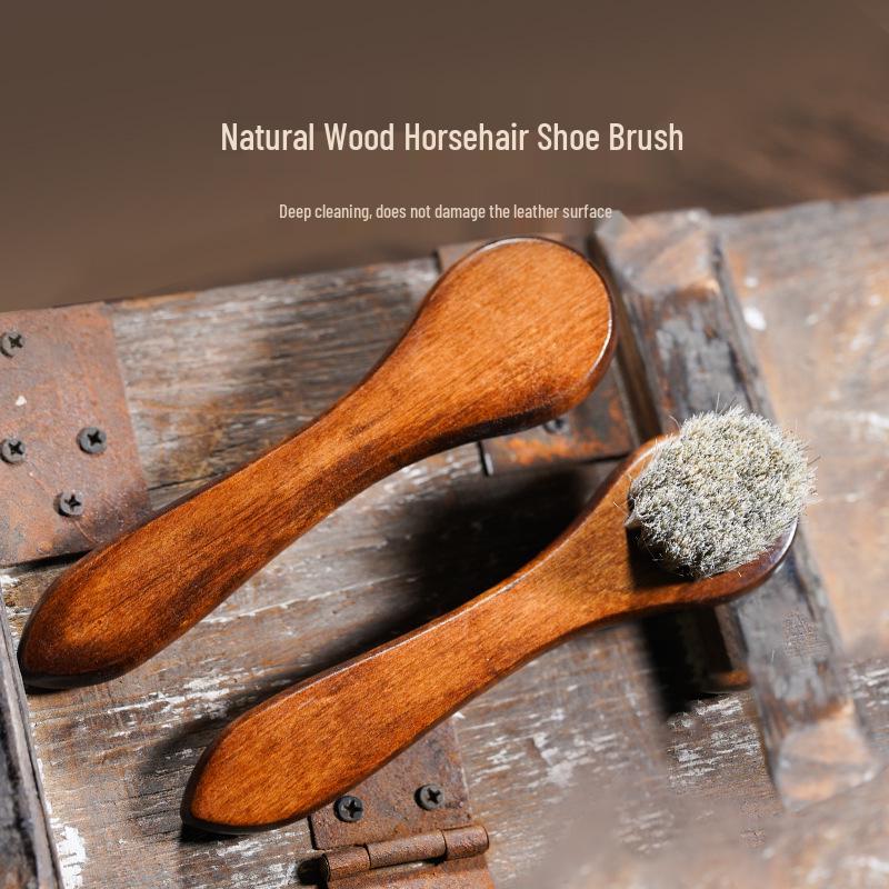Leather Shoe Brush with Horsehair - Solid Wood Handle, Gentle On Leather, Keeps Hands Clean. Ideal for Cleaning and Dust Removal.