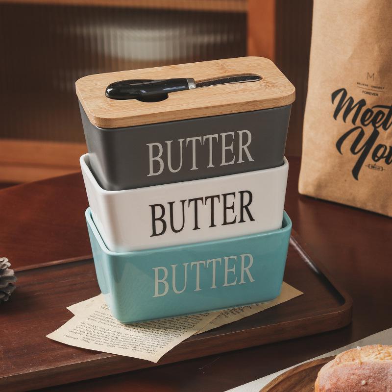 Ceramic Western-Style Butter Dish with Knife - Rectangle Cheese Box for Household and Restaurant Use