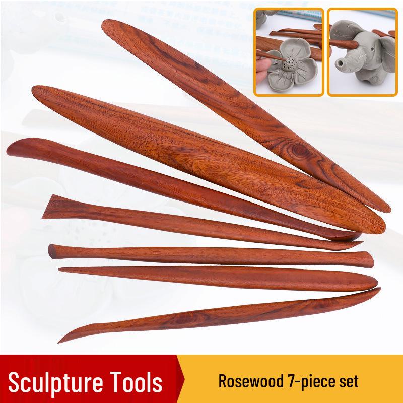 Rosewood Clay Modeling & Carving Knives Set - 7-Piece Pottery Sculpting Tools for Fine Detailing