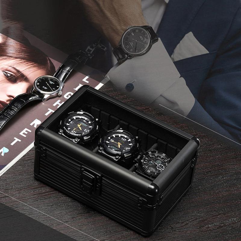 3-Piece Aluminum Watch Box: Multi-Color Storage with Transparent Lid & 3 Slots