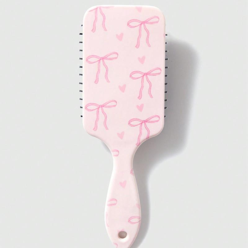 1pc Pink Bowknot Designed Hair Cushion Comb, Anti-Static Smooth Massage Paddle Hair Brush For Home Use