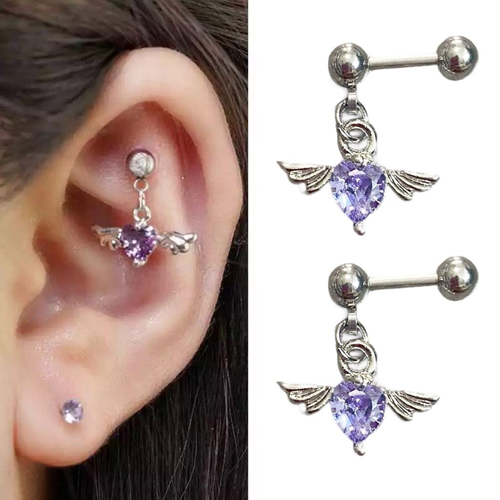 Stainless Steel Angel Wing Heart Stud Earrings Hypoallergenic Ear Studs Lightweight Jewelry For Women Everyday Wear