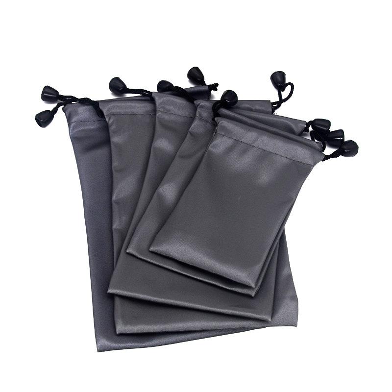 Waterproof Gray Drawstring Bag for Power Bank, Phone, Hard Drive, and Selfie Stick.
