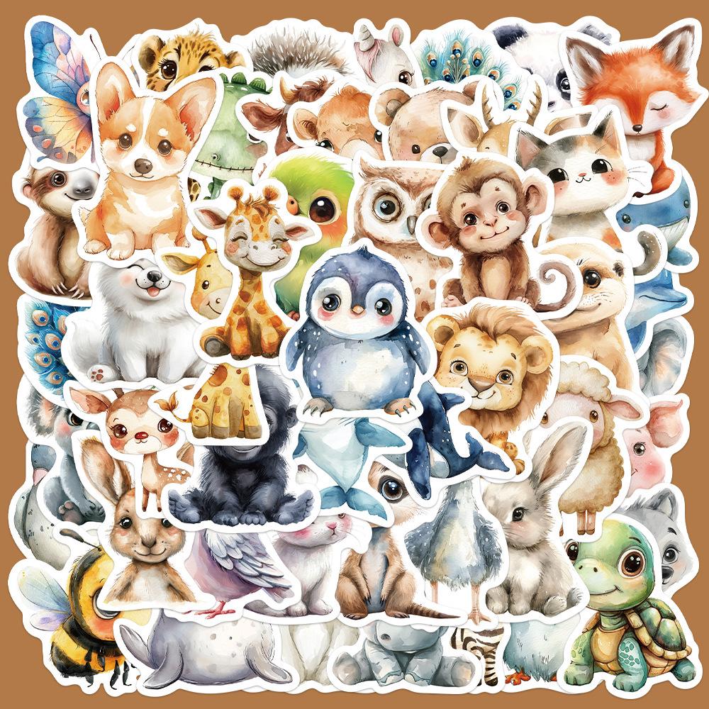 50 Cute Watercolor Cartoon Animal Stickers for Notebooks, Phone Cases, and Journals
