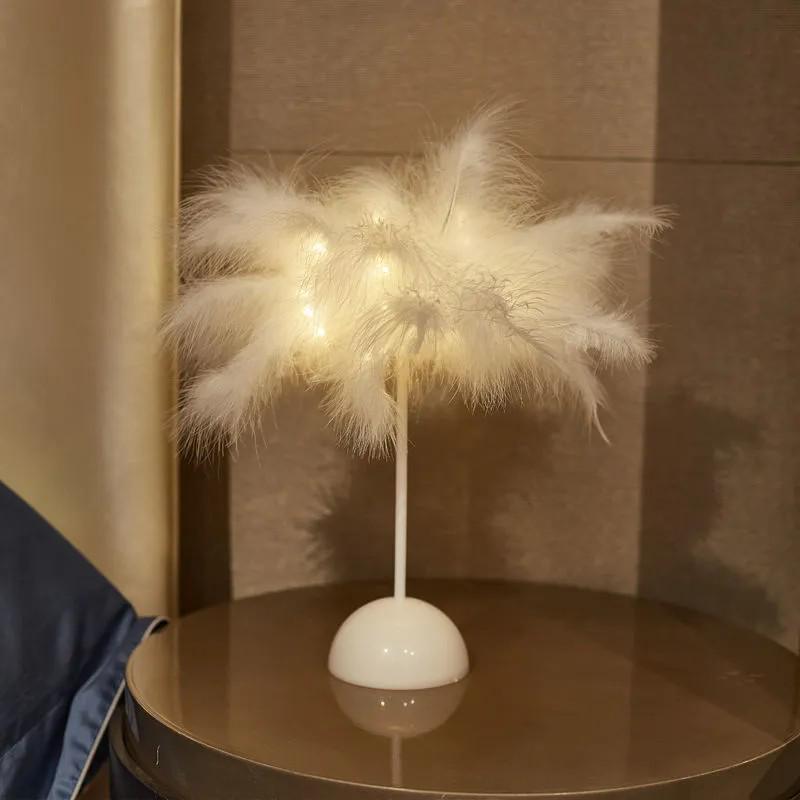Ostrich Feather Bedside Lamp – Warm Decorative Light for Bedroom or Wedding Room