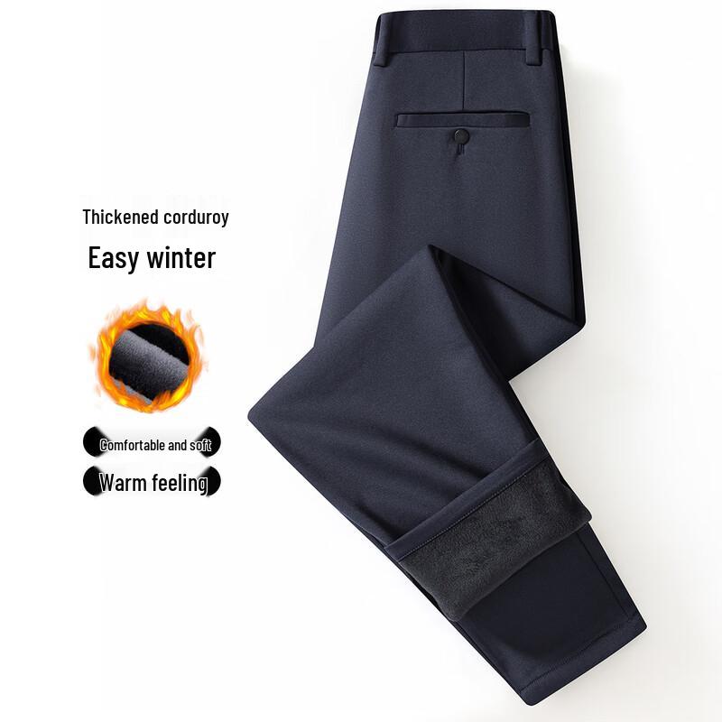 XueZhongFei Men's Fleece-Lined Business Casual Straight-Leg Pants