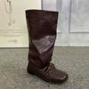 Martin Boots Women's Retro Round Head Strap Pleated Pile Boots Women's Thick Heel High Boots 2025 New Western Cowboy Boots