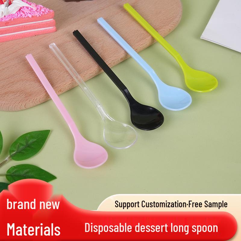 Disposable Long Handle Plastic Spoon for Fruit Salad, Cake, Ice Cream, and Yogurt - 13 Cm