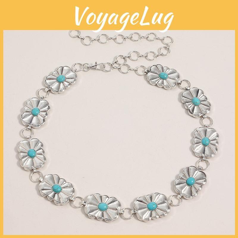 Summer Spring Womens Waist Belt With Turquoise Carved Accents And Hook Closure