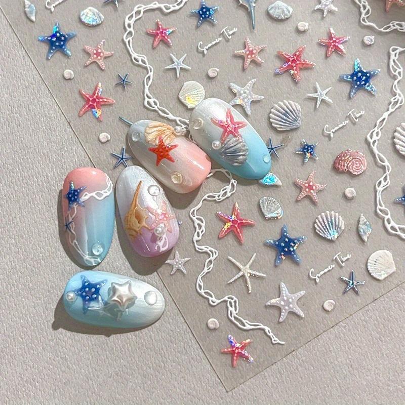 Starfish, Shell, Ocean Animal Nail Stickers, Shell Shiny Summer Nail Decorations