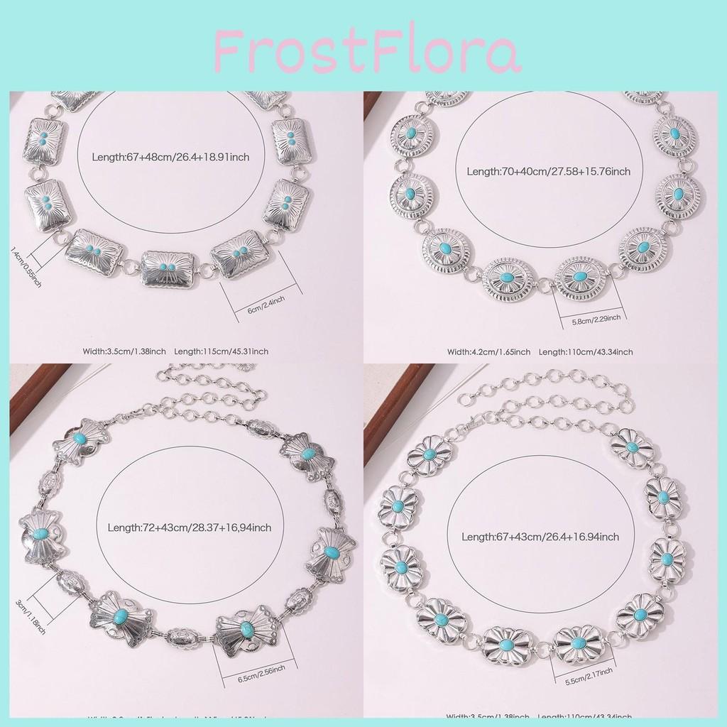 This women's waist chain features intricate bohemian-style carvings with vibrant turquoise accents, crafted from durable metal. Measuring 45 inches in length with a 1.6-inch width, it supports a single-loop fit and fastens securely with a hook clasp. Ideal for enhancing summer or spring outfits. Wipe clean with a soft cloth to maintain its shine.